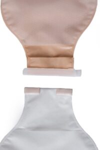 Калоприемники комплектуются запорным элементом в виде пластикового зажима, позволяющим удалять содержимое и промывать мешок по мере необходимости, не снимая его со стомы.